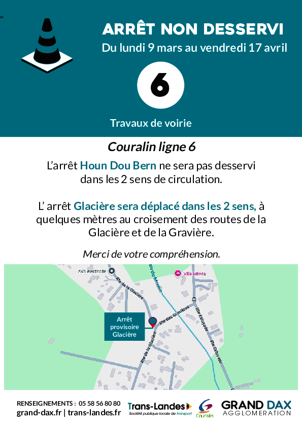 - les arrêts Glacière seront déplacés à quelques mètres, au croisement des routes de la Glacière et de la Gravière.